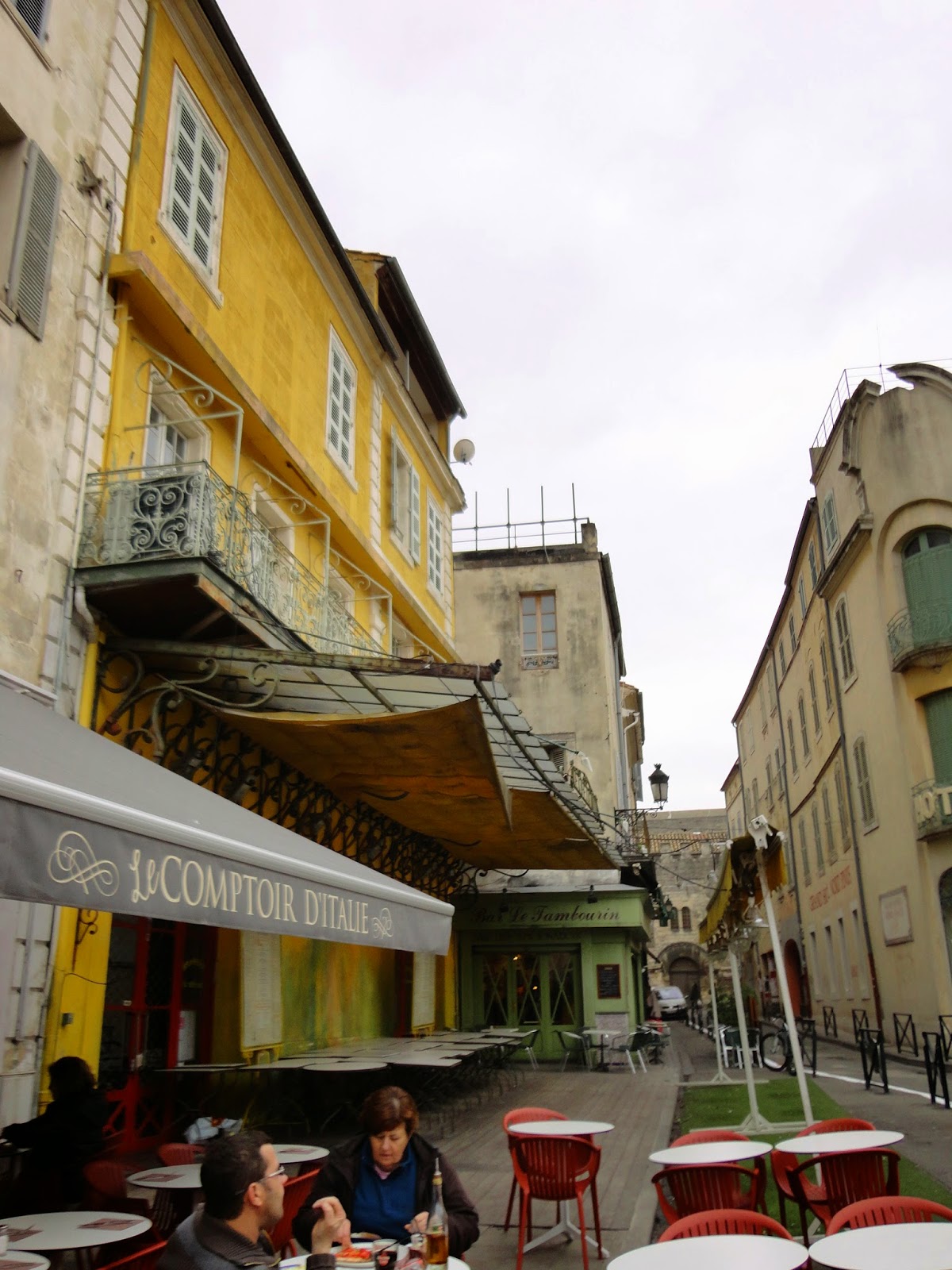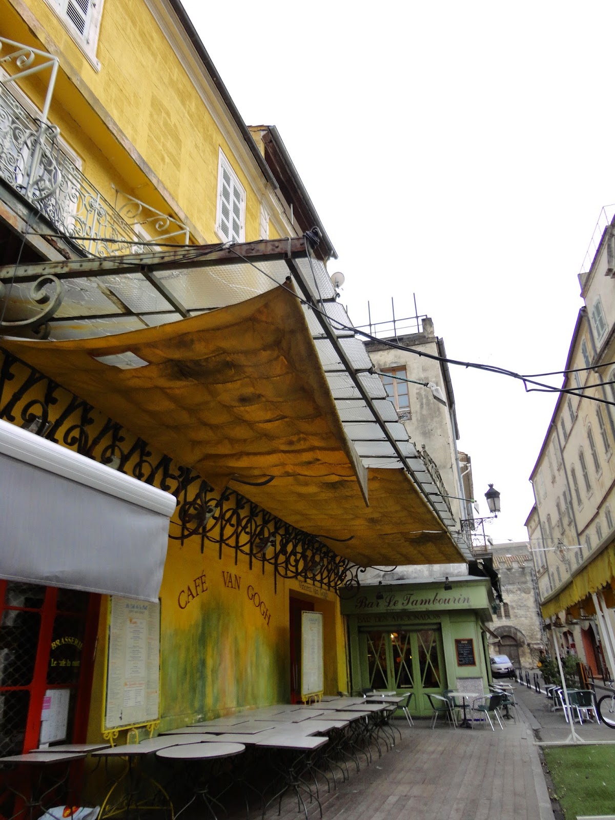 往隆河走去會經過梵谷咖啡館(Café Van Gogh),這裡有一幅梵谷很有名的畫Café Terrace at Night所畫的場景,目前收藏在荷蘭的克勒勒–米勒博物館內,冬天沒甚麼遊客,咖啡館也沒營業,聽說是換了好幾家老闆,但是咖啡館還在。